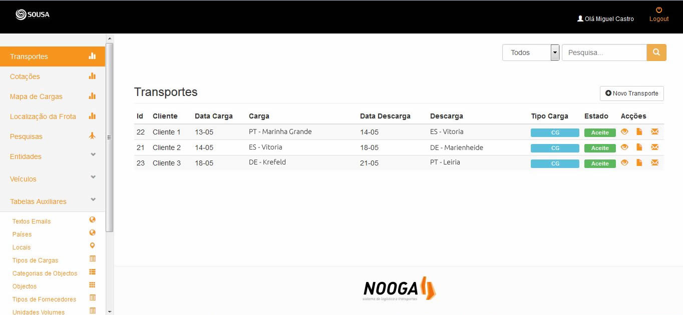 Em específico o NOOGA permite a gestão do planeamento de viagens, gestão e acompanhamento de pedidos de clientes; controlo de custos e análise de rentabilidades. Uma das principais funcionalidades é a possibilidade de integração com sistemas de “car tracking” para uma visão global do estado e localização da frota.